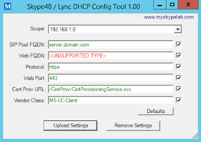 Skype4B / Lync DHCP Config Tool